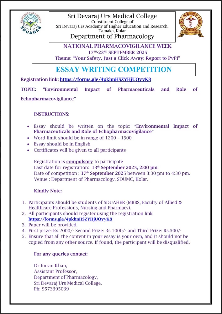 Venue : Department of Pharmacology, SDUMC, Kolar.
