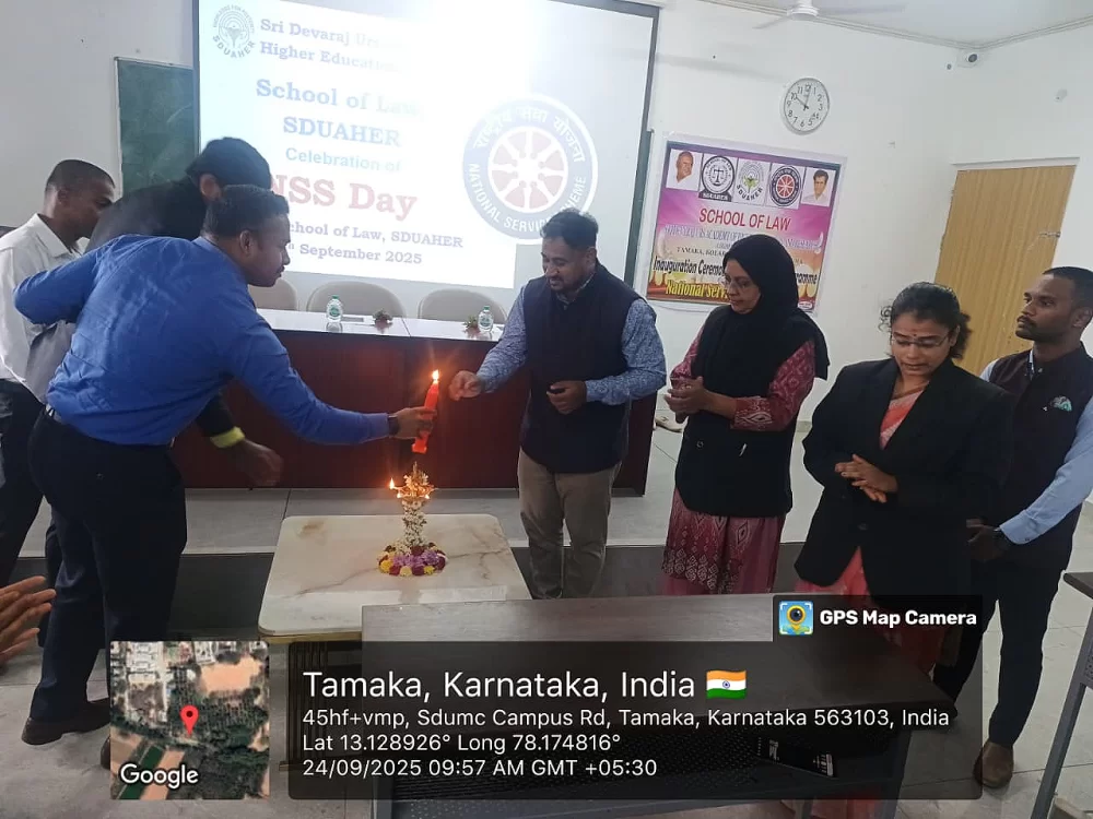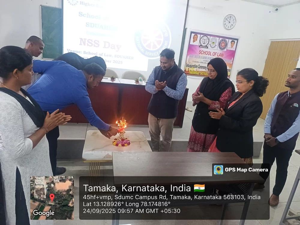 On the occasion of NSS Day, the School of Law, Sri Devaraj Urs Academy of Higher Education and Research, Kolar, is proud to inaugurate its NSS Committee.