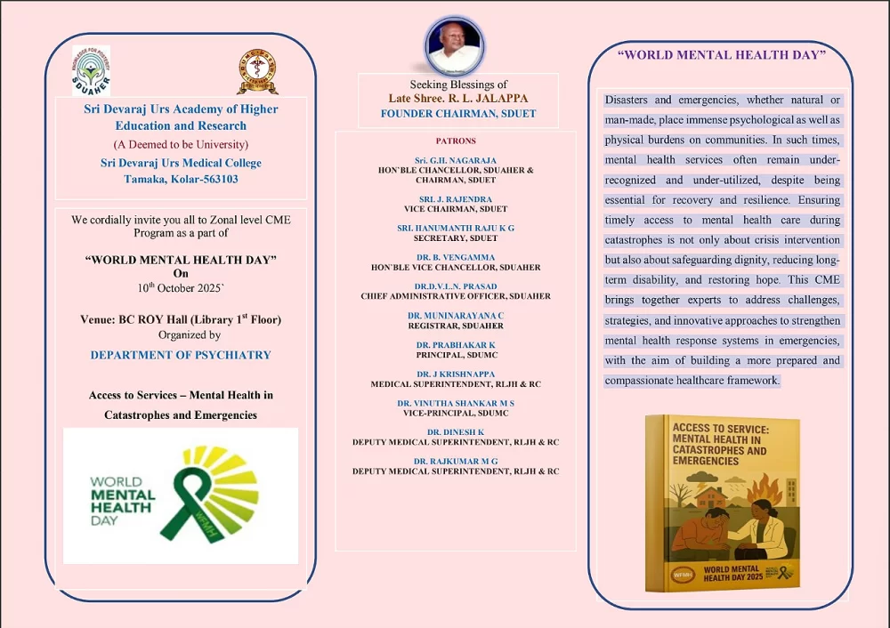 Disasters and emergencies, whether natural or man-made, place immense psychological as well as physical burdens on communities. In such times, mental health services often remain under- recognized and under-utilized, despite being essential for recovery and resilience. Ensuring timely access to mental health care during catastrophes is not only about crisis intervention but also about safeguarding dignity, reducing long- term disability, and restoring hope. This CME brings together experts to address challenges, strategies, and innovative approaches to strengthen mental health response systems in emergencies, with the aim of building a more prepared and compassionate healthcare framework.